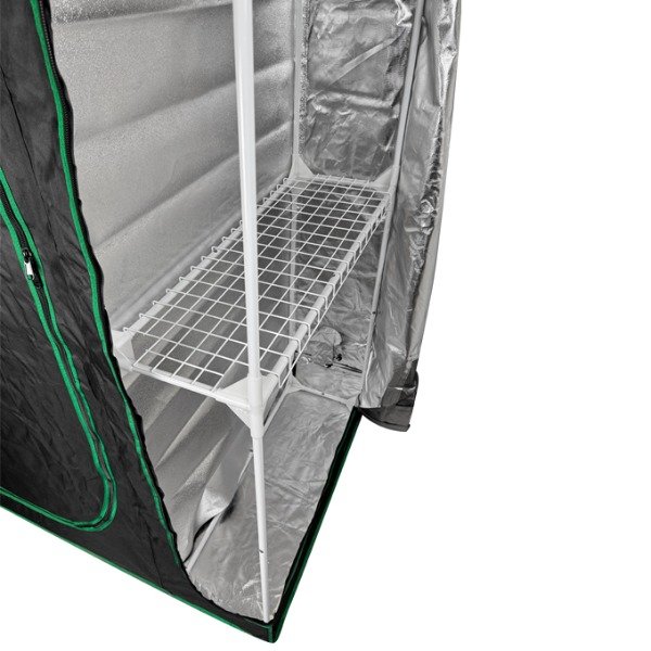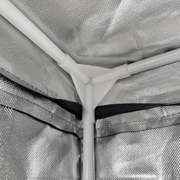 Los conectores de plástico de alta densidad garantizan un armado sencillo y firme, mientras que los cierres herméticos evitan filtraciones de luz y ayudan a mantener un entorno completamente controlado. Incluye doble suelo impermeable, mangas de ventilación ajustables y ventanas con malla anti-insectos, asegurando una correcta circulación de aire sin comprometer la seguridad del cultivo.